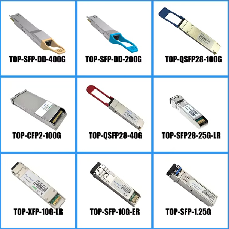 The TOP-QSFP+-40G-eSR4 40Gbps ESR4 850nm QSFP+ optical module. The QSFP+ full-duplex optical module offers 4 independent transmit and receive channels, each capable of 10Gbps operation for an aggregate data rate of 40Gbps over 300 meters of OM3 multi-mode fiber.